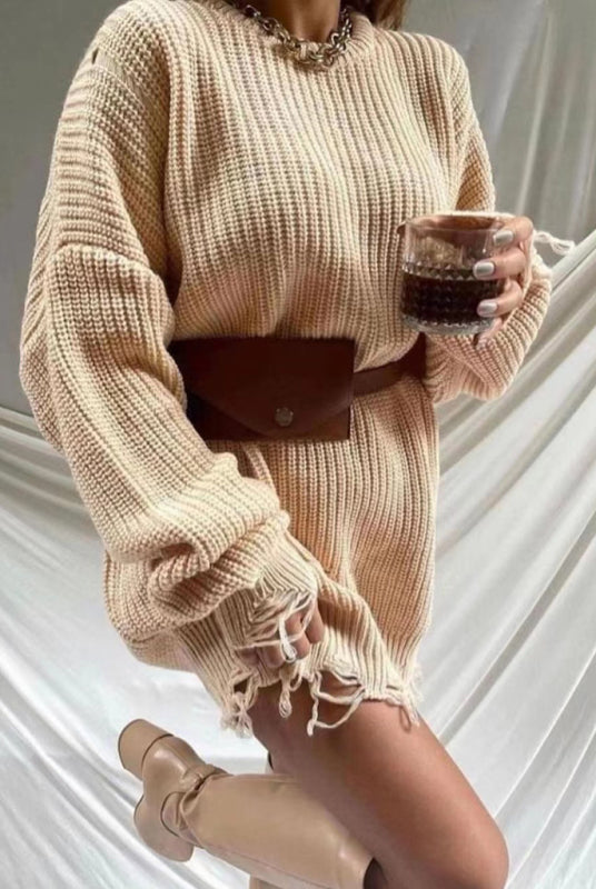 Step up your style game with this sleek and versatile two-piece set that blends comfort with fashion-forward elegance. Whether you're headed for brunch, date night, or a casual day out, this set has got you covered—literally. The soft knit fabric hugs your curves in all the right places while keeping you cozy during those crisp autumn and winter days.