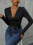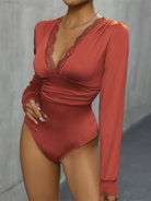 Ladies Lace Stitching Long Sleeve Bodysuit – Elegance Meets Allure ✨