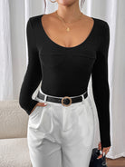 Round Neck Brushed Ribbed Black Long-Sleeved Bodysuit β Effortless Style, Maximum Comfort