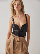 Turn heads and make a statement in the Women's Beaded Suspender Slim Fit Bodysuit. Designed for the bold and the stylish, this sleek, curve-hugging bodysuit features delicate beaded suspender straps that add just the right amount of sparkle. Whether you're hitting the town or elevating your everyday look, this piece delivers the perfect balance of sophistication and sultry charm.