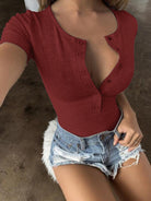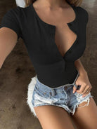 π€ Sexy Deep V Button Jumpsuit β Slim Fit, Chic & Comfy Bodysuit for Day or Night β¨