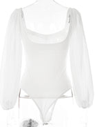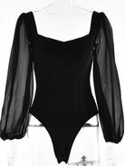 Pair this bodysuit with high-waisted leather pants and strappy heels for a sultry night-out look, or layer it under a blazer with tailored trousers for an effortlessly polished vibe.