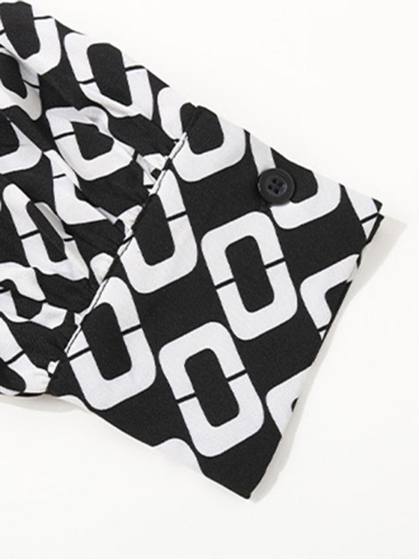 Turn heads effortlessly with our Women's Geometric Print Fashion Long Sleeve Bodysuit! Featuring a sleek, figure-hugging fit and a bold geometric print, this bodysuit is your go-to for making a statement. Whether you're dressing it up for a night out or keeping it casual, this piece guarantees a flawless, put-together look.