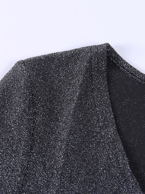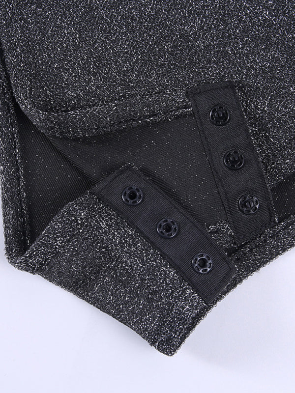 ✨ Sexy V-Neck Slim Bodysuit – Long Sleeve, Shiny & Chic for Any Outfit ✨
