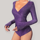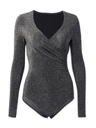 Women's Sexy V-Neck Bright Silk Slim Long-Sleeved Bodysuit