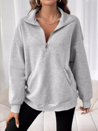 New Fashion Zipper Lapel Solid Color Casual Sweater