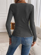 Slim Fit U-Neck Buttoned Striped Long Sleeve Top β Effortless Chic, All Year Round