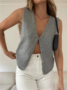π₯ Sleek & Sexy Deep V Knitted Sleeveless Cardigan Top β Hot Girl Style Must-Have π₯