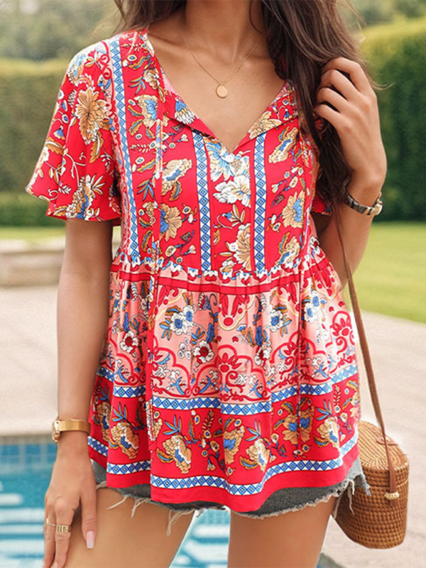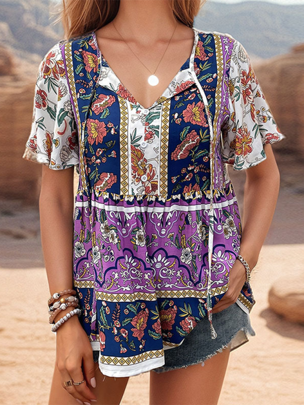 ✨ Boho Chic Floral Print Blouse – Stylish & Trendy Women's Top for Spring Summer ✨