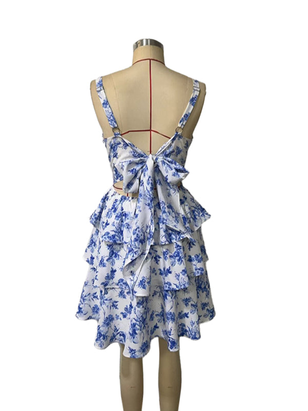 Bow Tie Backless Sling Cake Short Dress – Effortlessly Chic & Flirty
