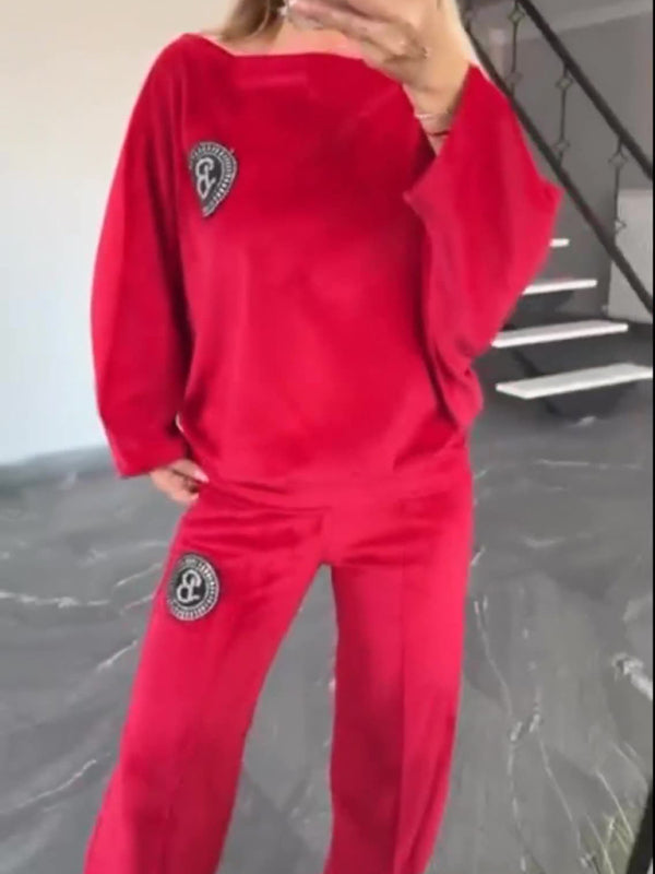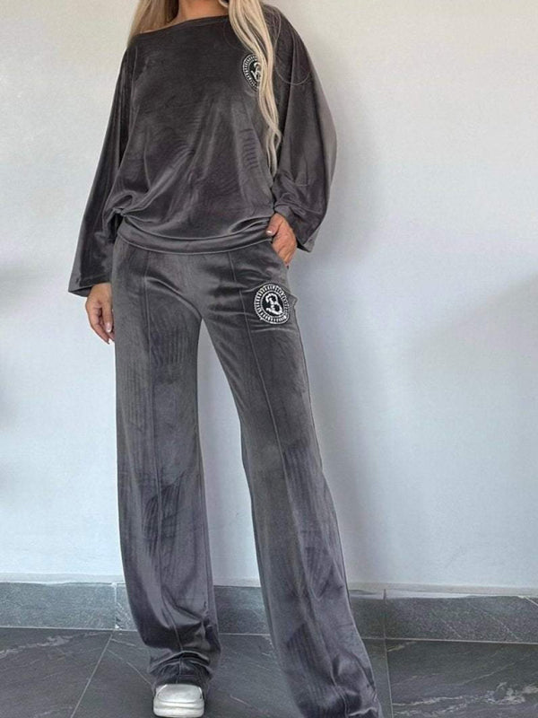 ✨ Luxe Gold Velvet Two-Piece Set – Chic Bat Sleeve Lounge Outfit ✨