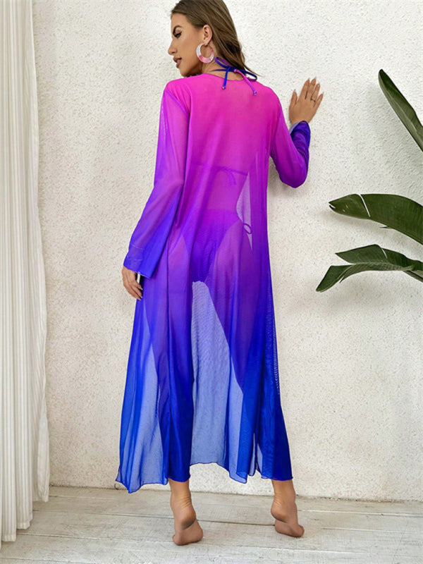Make waves with our sexy and stylish see-through bikini set, designed for ultimate confidence and effortless charm. Featuring a gradient color design and a sheer cover-up, this set is perfect for lounging by the pool, strolling along the shore, or sipping cocktails at a tropical resort. Get ready to glow under the sun and embrace your inner beach goddess!