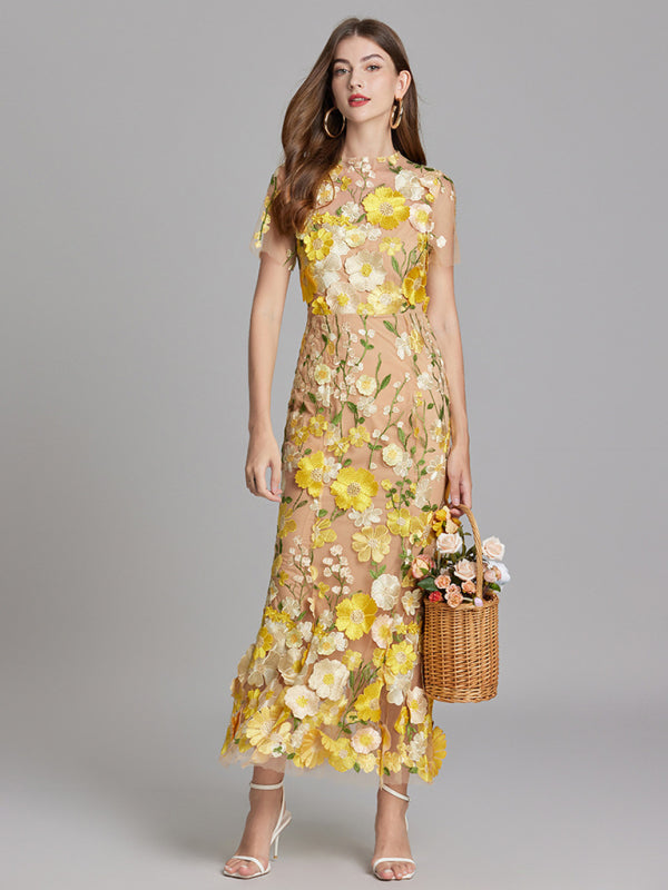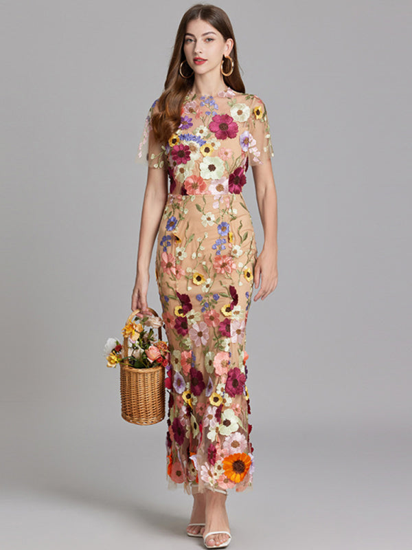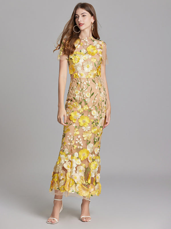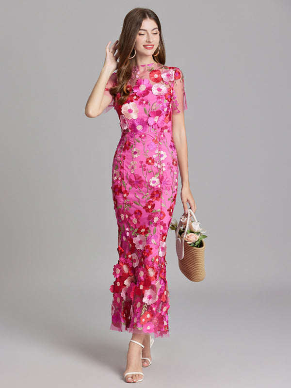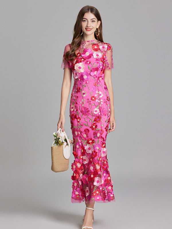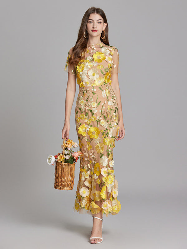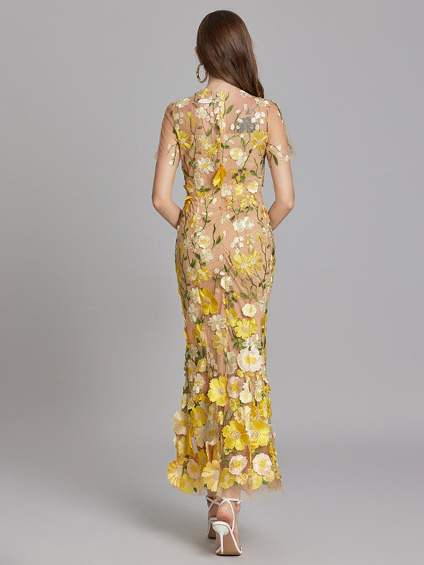 Turn heads and steal the spotlight in this stunning floral mesh embroidery dress. Designed for the modern woman who loves a touch of romance, this waist-hugging, hip-accentuating masterpiece is perfect for weddings, date nights, and special occasions. The delicate three-dimensional floral details add a dreamy, ethereal vibe thatβs impossible to ignore.
