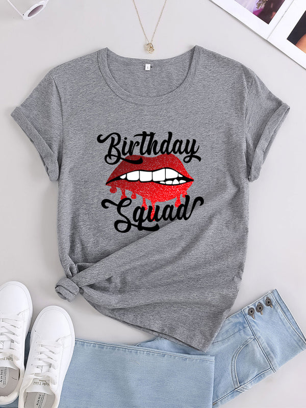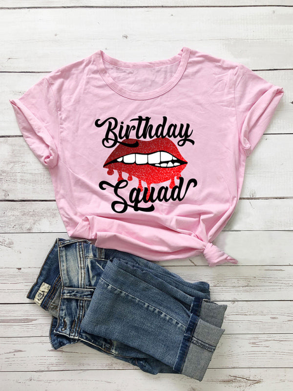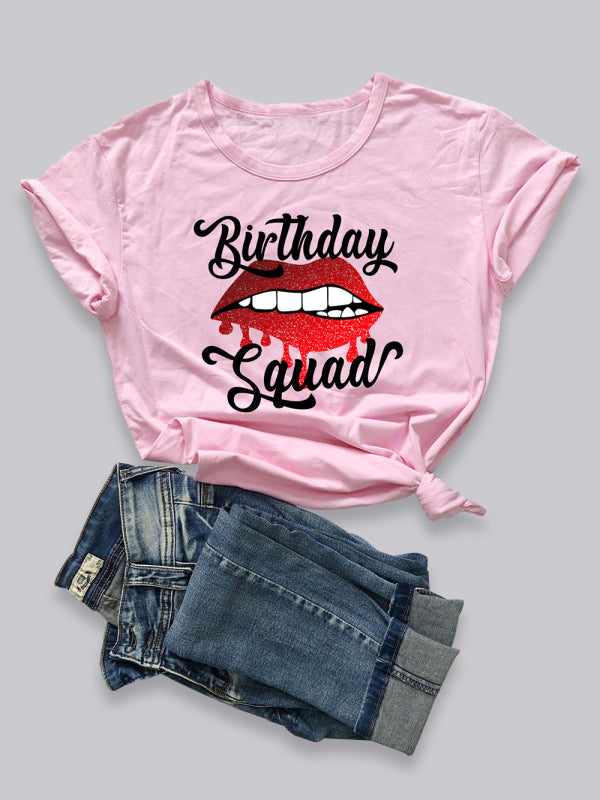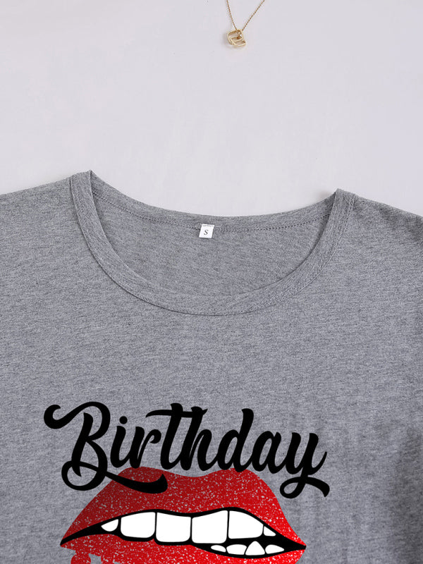 Lips Print Birthday Graphic Casual Tee β Bold, Chic & Effortlessly Stylish!