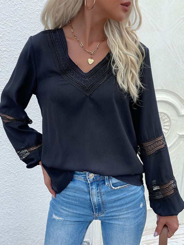 π€ Chic Lace V-Neck Long Sleeve Blouse β Elegant & Stylish Everyday Top π€