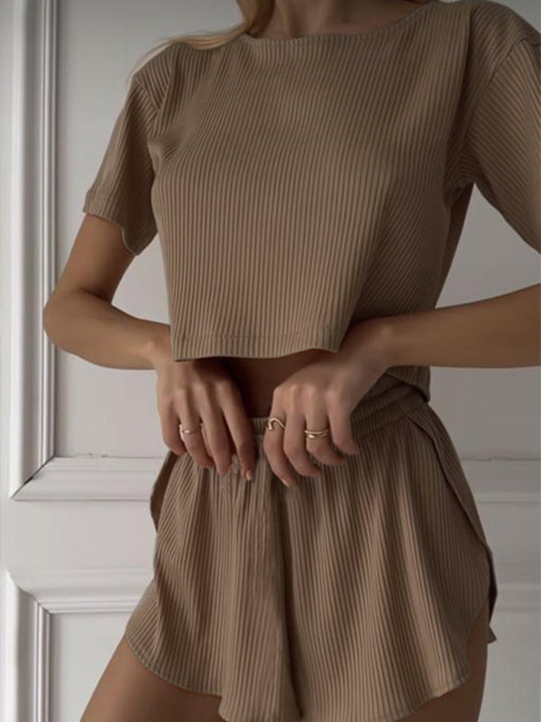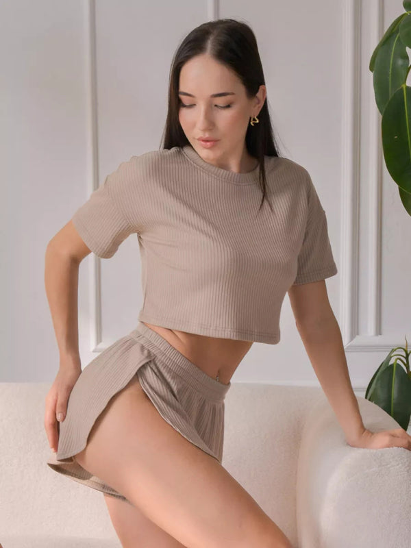 Relax in style with this casual yet sexy two-piece set! Featuring a round neck short sleeve top and flirty cross-strap shorts, this set combines comfort and flair—perfect for lounging, running errands, or a laid-back day out. Made with a soft, stretchy fabric, it offers a cozy fit while keeping you effortlessly stylish!