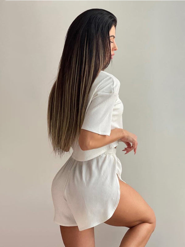 ✔️ Comfy Two-Piece Set – Relaxed top and sexy cross-strap shorts for a flattering look