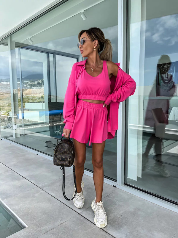 ✔ Three-Piece Perfection – Includes a breezy top, stylish shorts, and a coordinating outer layer for a complete, put-together look.