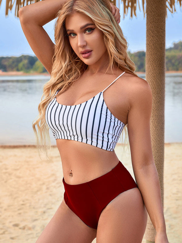 New High Waist Split Bikini β Striped & Stunning for Your Next Beach Getaway!