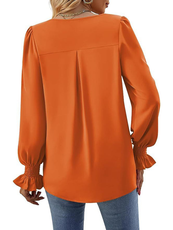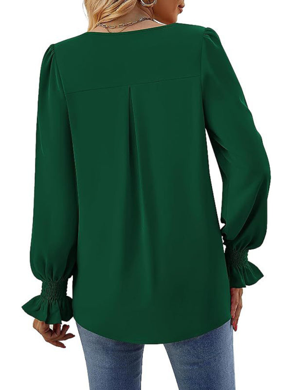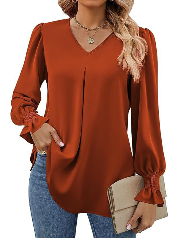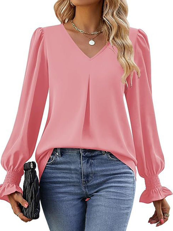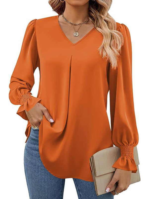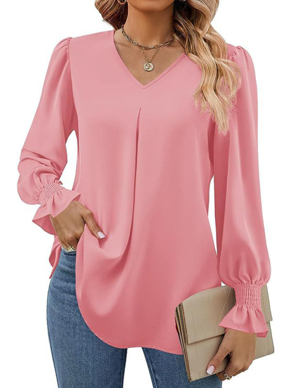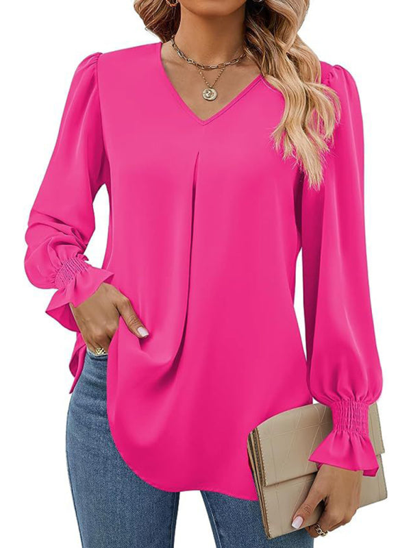 ✨ Chic & Flowy V-Neck Chiffon Blouse – Long Sleeve, Elegant & Stylish ✨