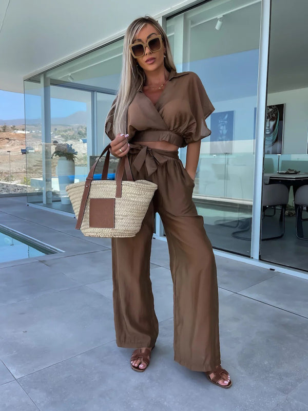 ✨ Chic & Comfy Deep V Waist Tie Pants Set – Perfect for Spring & Summer ✨