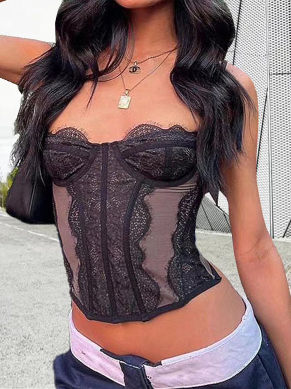 Lace Embroidered Fishbone Tube Top – Effortlessly Sexy, Unapologetically Bold