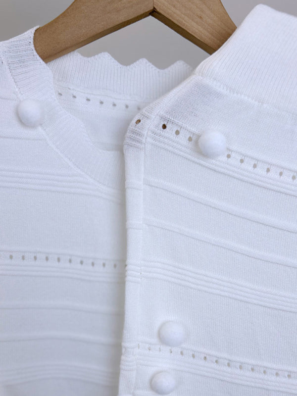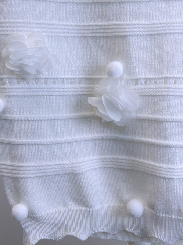 Turn heads in this gorgeous navel-baring two-piece set that blends flirty elegance with modern charm! Featuring a pompom embroidered cropped vest and a ruffled slit knitted skirt, this set is designed to accentuate your shape while keeping you comfortable and stylish. Whether you're heading to brunch, a summer soirée, or a night out, this set is your new go-to for effortless glam.