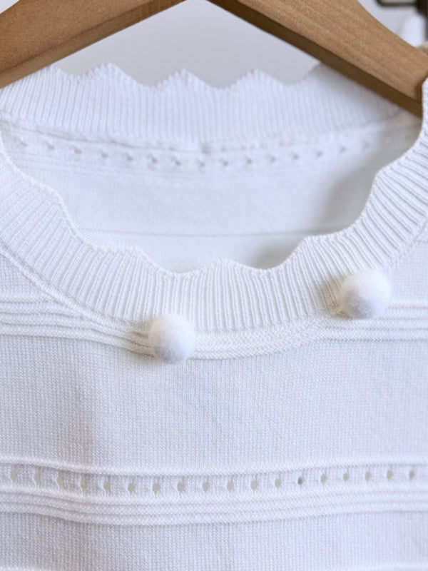 ✨ Chic Knitted Two-Piece Set – Pompom Vest & Ruffled Slit Skirt ✨