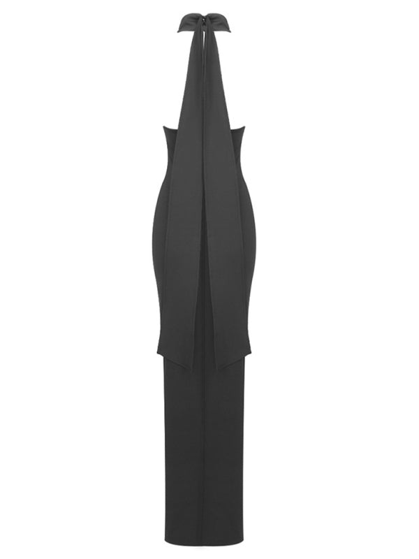 ✨ Elegant Ribbon Flower Halter Neck Maxi Dress Sleeveless Chic Look ✨