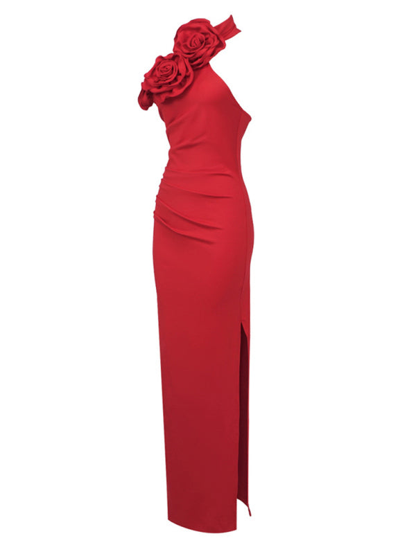 Ribbon Flower Halter Neck Long Dress – Elegance with a Touch of Romance