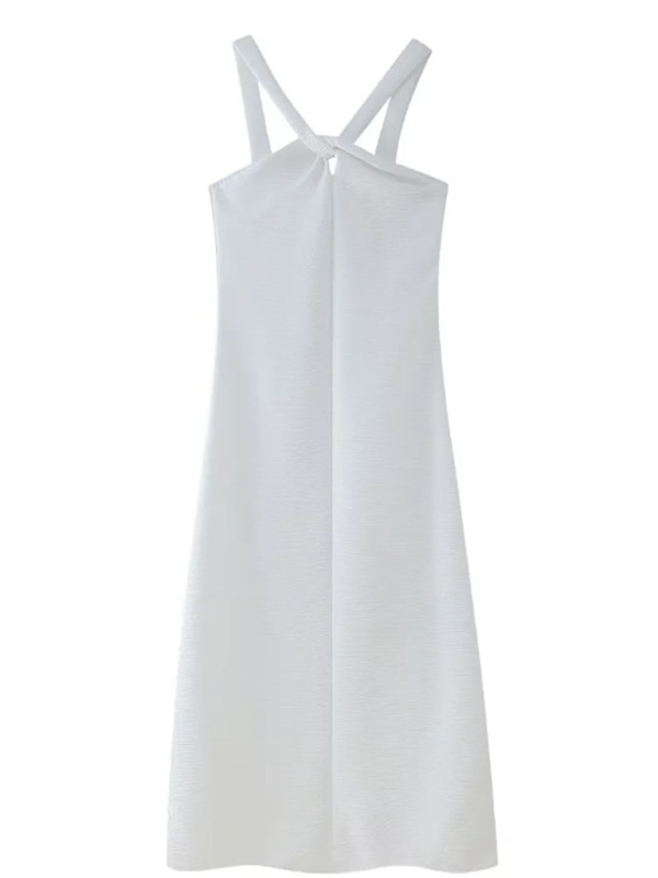 Make a statement in this stunning cross-chest halter dress, designed for effortless glamour and sophistication. The sleek halter neckline wraps beautifully around the neck, creating an elegant draped effect that enhances your silhouette. Whether you're headed to a romantic dinner, cocktail party, or special event, this dress is your go-to for a chic, polished look.