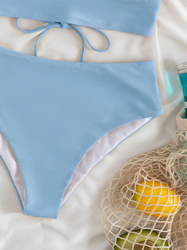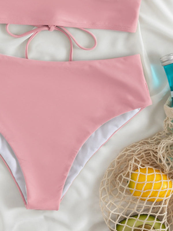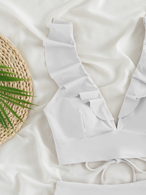 New Women's Lace V-Neck Ruffled High-Waist Split Swimsuit Bikini