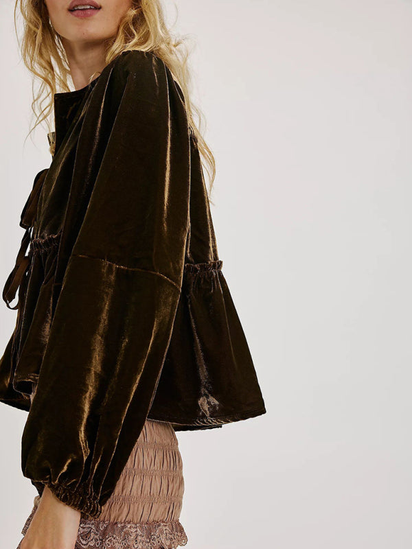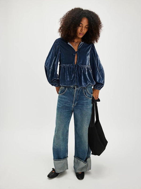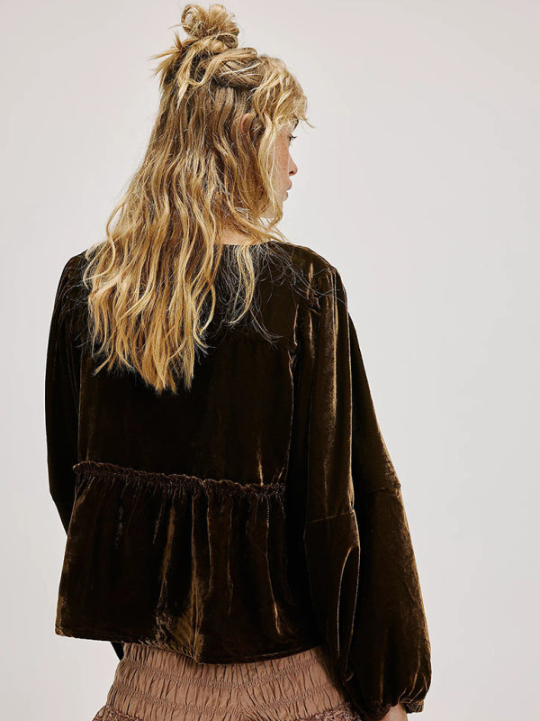 New Women's Sweet Casual Tie Velvet Shirt β Luxe Comfort Meets Effortless Style