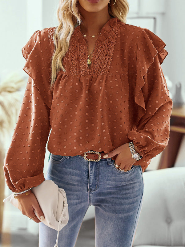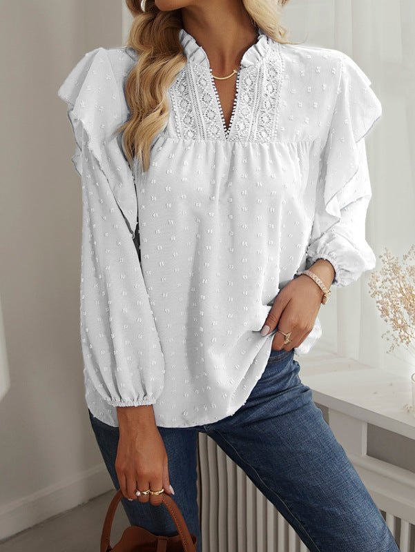 π€ Chic Ruffled Lantern Sleeve Lace Top β Elegant & Stylish Blouse for Any Season β¨