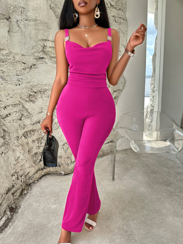 Sexy Solid Color Metal Jumpsuit with Suspenders β Own the Spotlight