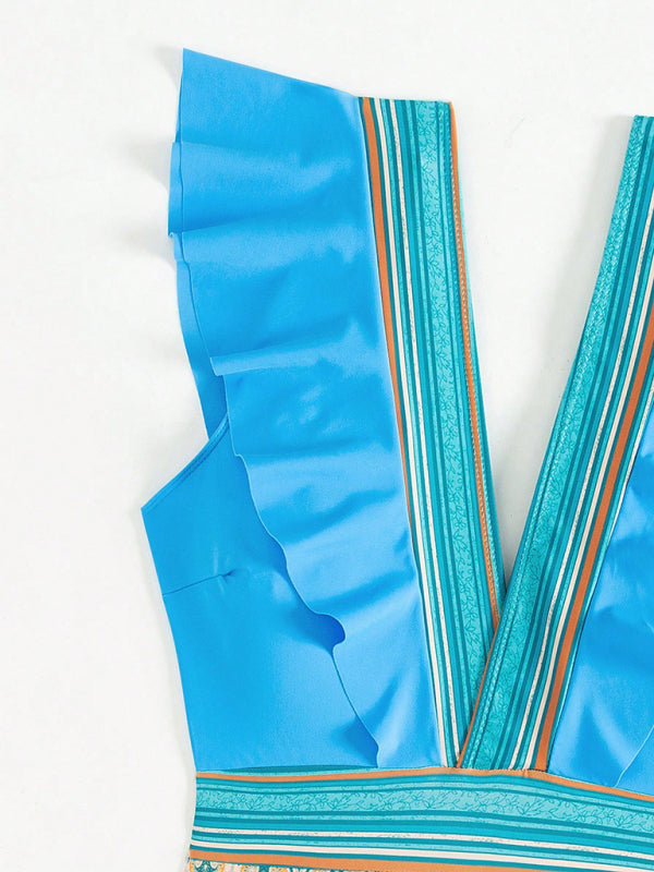 Sexy V-Neck Ruffled Backless Swimsuit β Turn Heads & Make Waves!