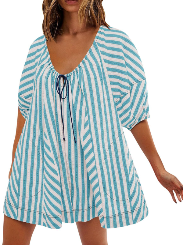 Turn heads and stay effortlessly stylish in our Short-Sleeved Striped Jumpsuitβthe perfect blend of casual comfort and sleek sophistication. Designed with a deep V-neckline and flowy wide-leg silhouette, this one-piece wonder is made to flatter while keeping you cool and confident. Whether you're stepping out for brunch, hitting the beach, or owning the night, this jumpsuit is your new go-to for making a statement with minimal effort.