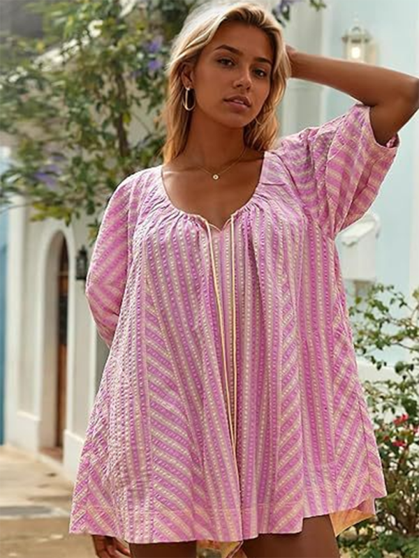 π€ Striped Short-Sleeve Jumpsuit β Chic, Comfy & Slimming V-Neck Romper π€
