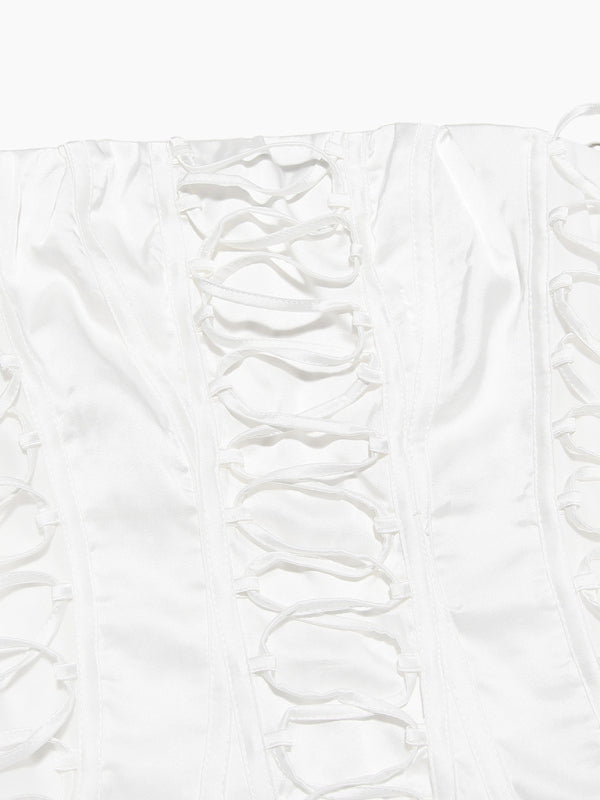 β Chic & Sultry β The strapless design highlights your shoulders, while the halter back adds a daring touch.