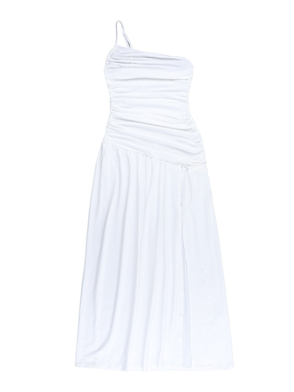Strapless Off-Shoulder Gathered Slit A-Line Dress