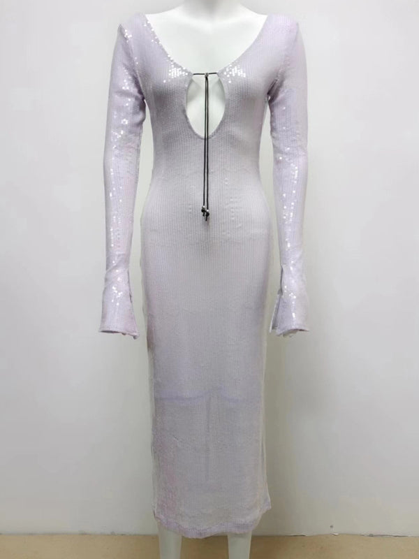 Turn heads and steal the spotlight in our Stylish Sequined V-Neck Backless Dress – the ultimate statement piece for your next night out. With its figure-hugging silhouette, shimmering sequins, and daring open-back design, this dress is your go-to for effortless glam. Whether you're hitting the club, attending a cocktail party, or making a grand entrance at an event, this look guarantees all eyes on you.