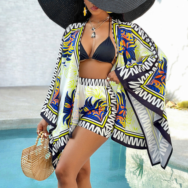 Women's Casual Printed Cardigan Shorts Two-Piece Set