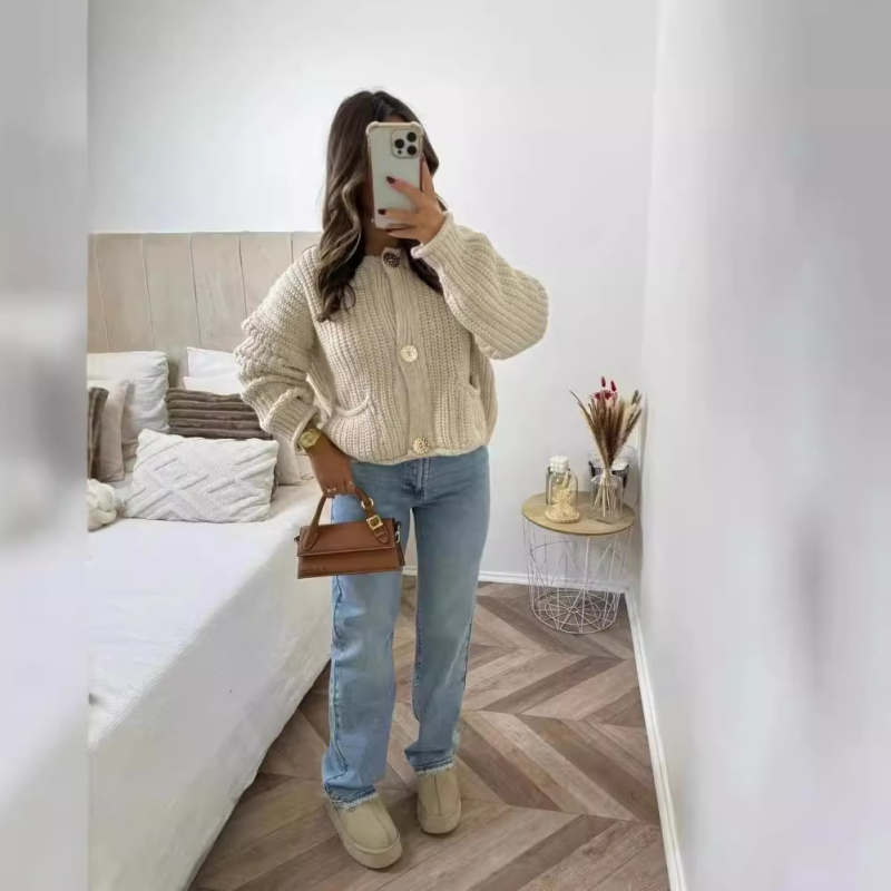 Get ready to turn heads while staying effortlessly cozy! Our Chunky Needle Long Sleeve Sweater is the perfect blend of style, comfort, and warmth—a must-have for your autumn-to-winter wardrobe. Featuring an oversized fit, chunky knit texture, and statement big buttons, this sweater is all about laid-back luxury. Whether you’re lounging at home or stepping out for a casual brunch, this piece is the ultimate go-to!