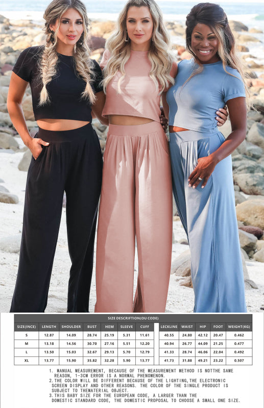 ✨ Chic & Comfy Two-Piece Lounge Set – Trendy Wide-Leg Pants & Tee for Effortless Style ✨
