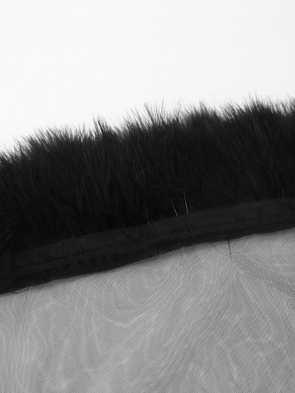✨ Cozy & Chic Feather Trim Mesh Nightgown for Women – Lounge in Style ✨