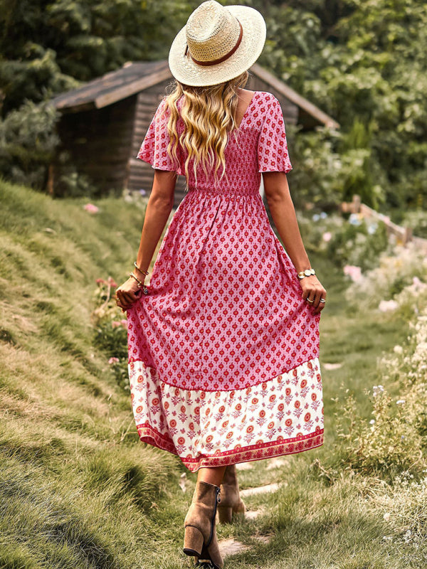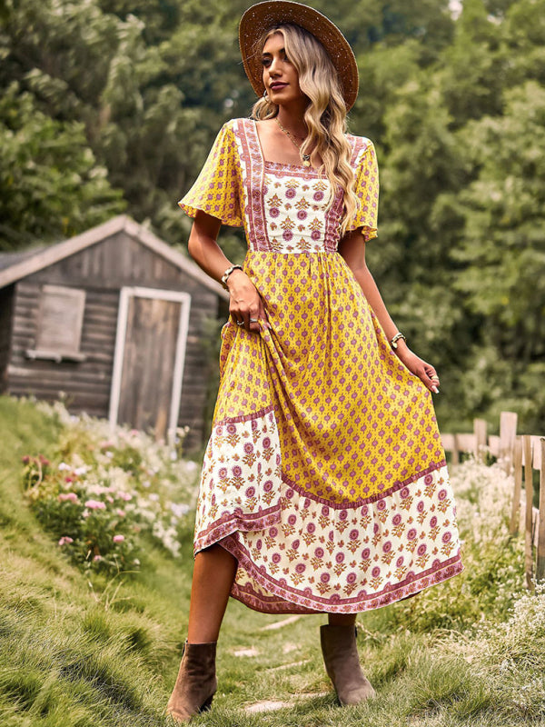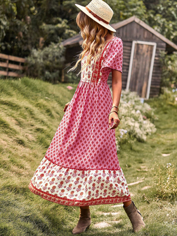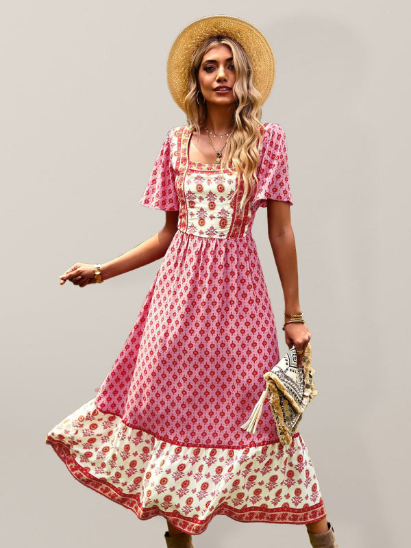 Women's Neck Bohemian Short Sleeve Midi Dress – Effortlessly Chic & Boho Beautiful