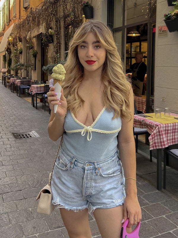 ✨ Sexy Deep V Lace Bow Tank Top – Trendy & Flirty Spring Summer Vest ✨