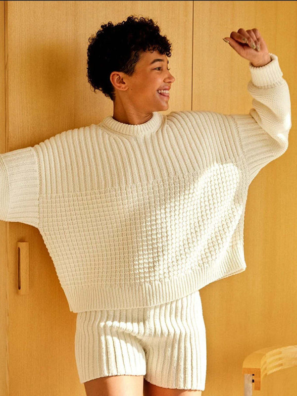 Step up your casual wardrobe with our Women's Knitted Round Neck Long Sleeve Loose Casual Shorts Two-Piece Set β the ultimate blend of comfort and effortless style! Whether you're lounging at home, running errands, or grabbing coffee with friends, this knit set keeps you looking chic and put-together with minimal effort.