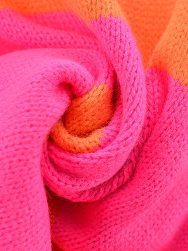 ๐งก Cozy Chic Striped Knit Sweater Women's Casual Patchwork Pullover Trendy & Comfy ๐งก