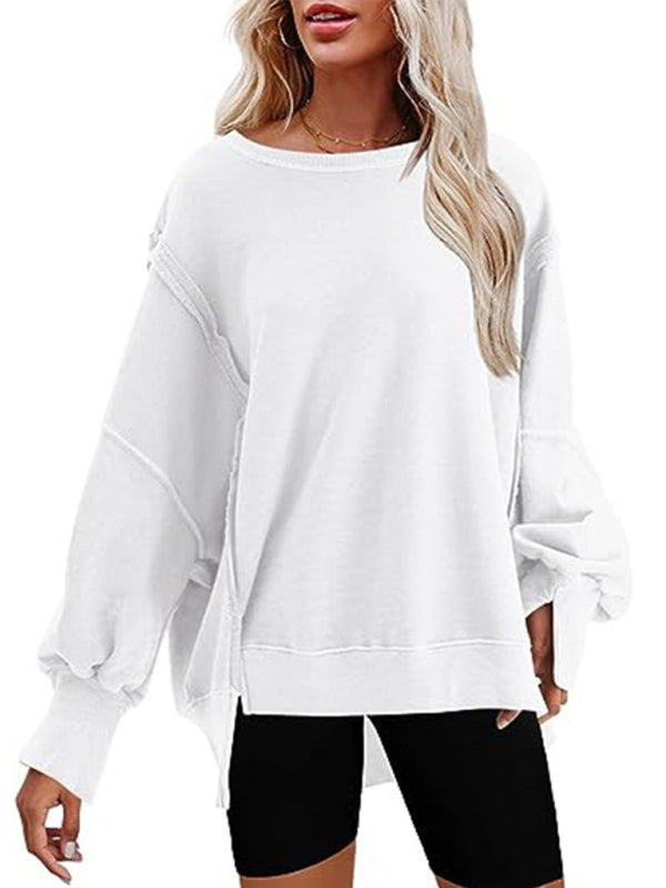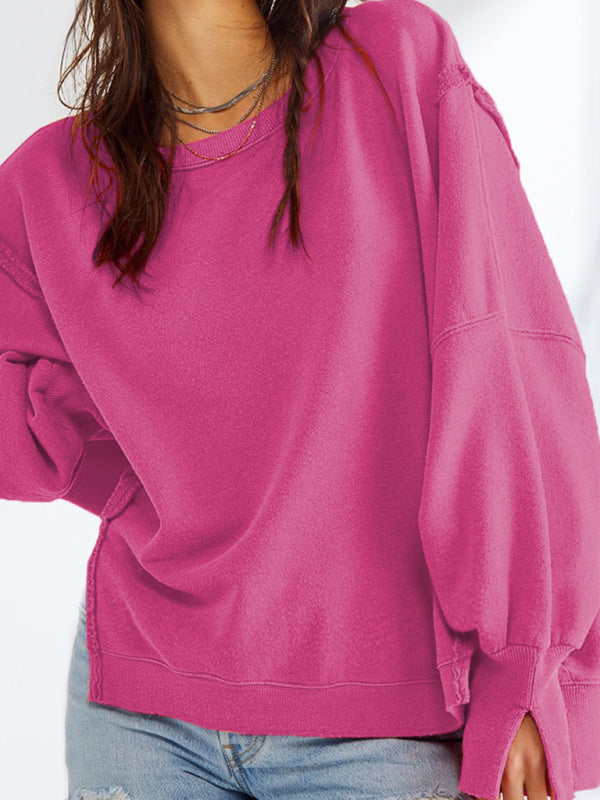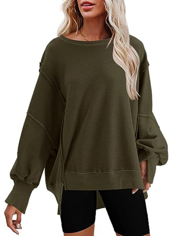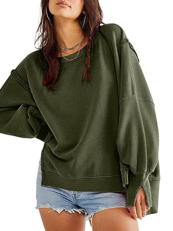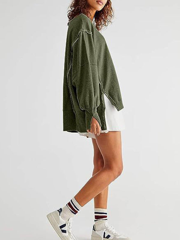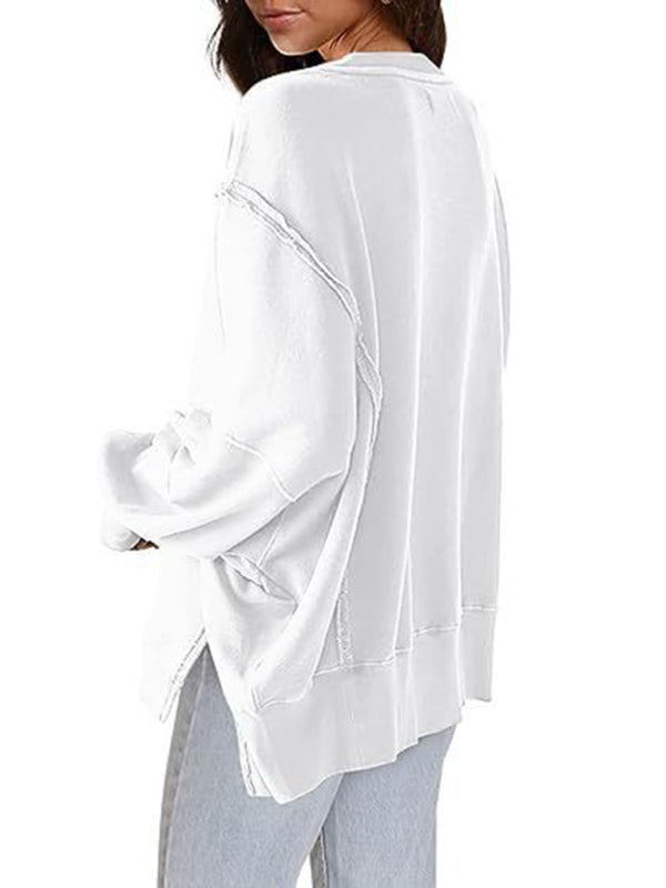 Effortless Chic: Women's Round Neck Loose Side Slit Long Sleeve Sweatshirt
